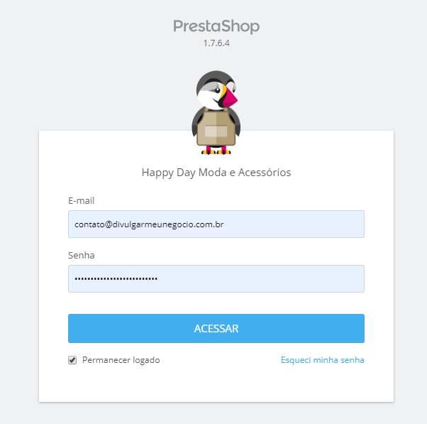 1. Primeiro, acesse o Painel da sua Loja com o e-mail e senha fornecidos pela nossa equipe.