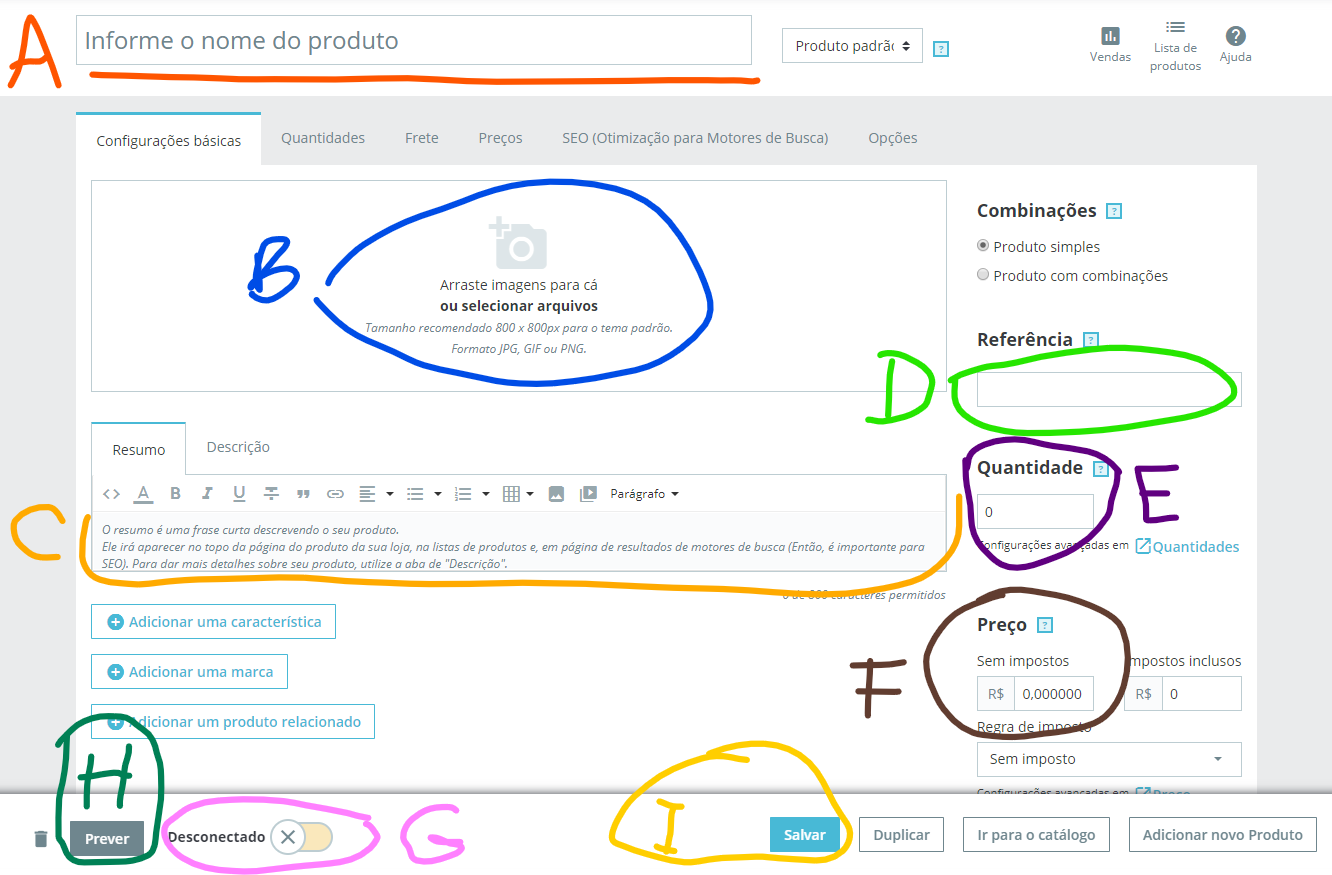 I) Clique em [Salvar] e depois poderá [Ir para o catálogo] ou [Adicionar novo Produto]