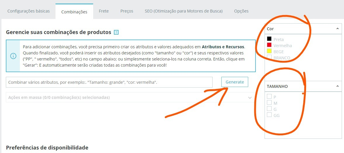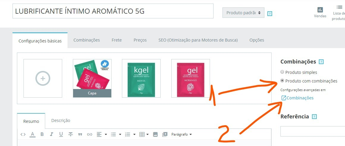 Como cadastrar produtos com combinações (atributos)